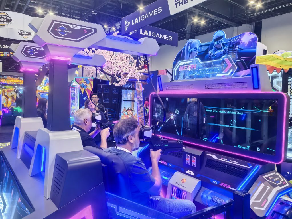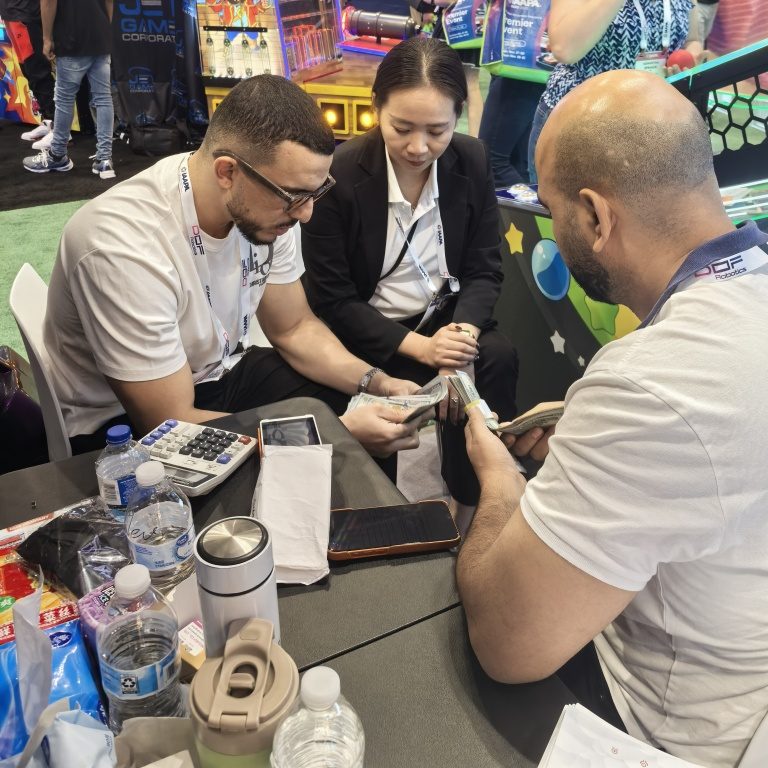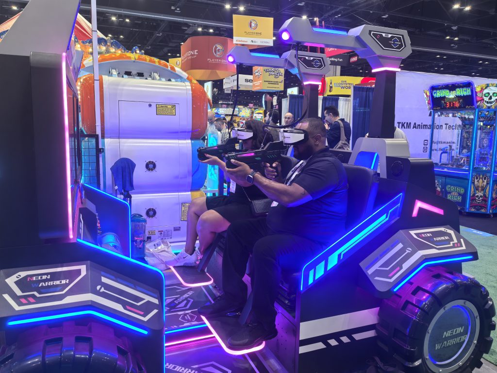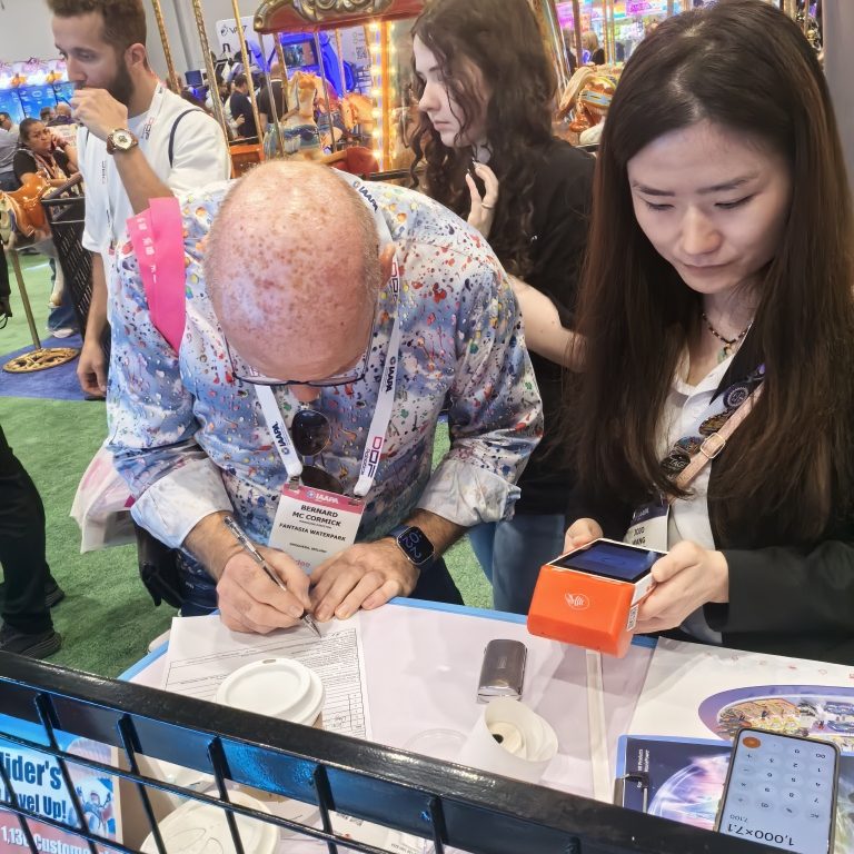 At the IAAPA exhibition, our brand-new VR products—”VR paraglider” 和 “霓虹战士”—ignited the enthusiasm of the audience upon their debut, becoming one of the most eye-catching highlights of the exhibition. Long queues consistently formed in front of our booth, with many visitors from all over the world coming specifically to experience the charm of this technology from China firsthand.